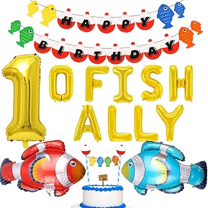 Amazon Com Joymemo Fishing First Birthday Decorations Gone Fishing Party Supplies O Fish Ally One Balloons Banner Fish Foil Balloons Little Fisherman The Big One Fishing 1st Birthday Toys Games