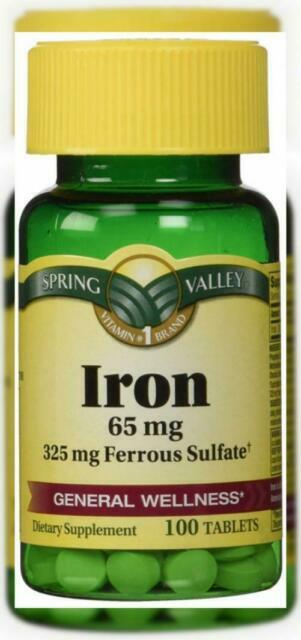 Iron Dietary Supplement 325 Mg Ferrous Sulfate Spring Valley 100 Tablets Ebay