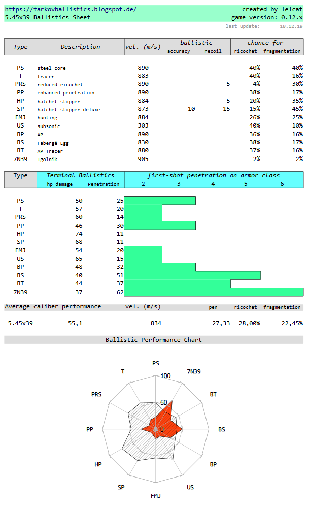 Escape From Tarkov Ammo Chart What Do We Shoot Today