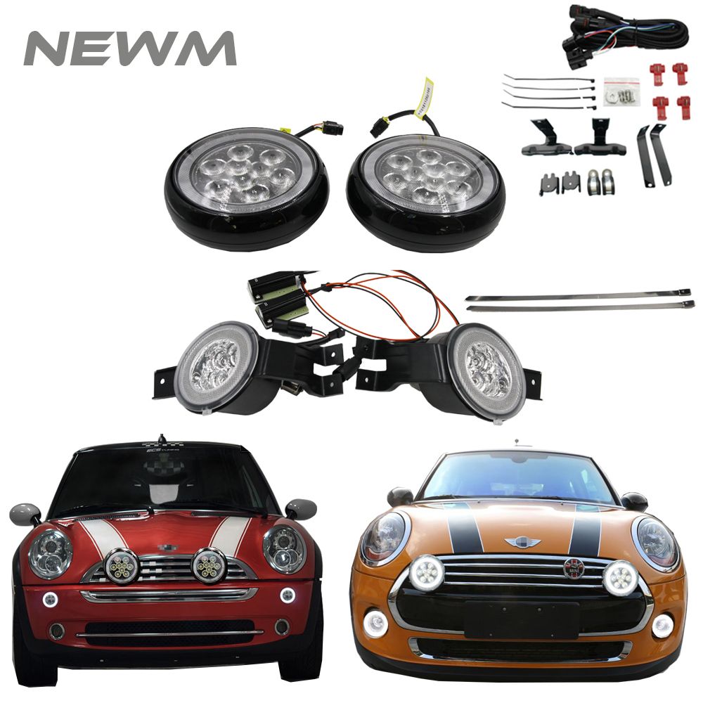 Amazon Com Led Rally Lights For Mini Cooper Gen 2 Nslumo 2pcs Set Led Rally Driving Light With Halo Ring Angel Eyes Drl Black Shell Daylight Kits For Mini Cooper R55 R56 R57