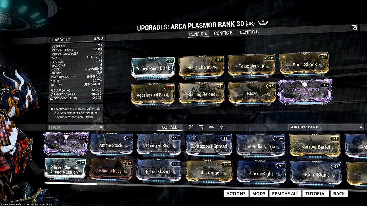 There are more powerful mods that can boost damage and sustainability, but these mods are easy to farm.. The Arca Plasmor is a Corpus-built plasma shotgun that fires highly damaging pulses of Radiation with a guaranteed Impact proc.. A Status build is more reliable, a Crit build will have wildly fluctuating damage (meh)..