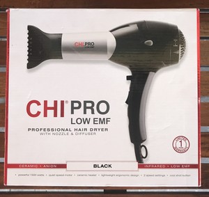Chi Nwt Chi Pro Low Emf Pro Hair Dryer W Nozzle Diffuser Black