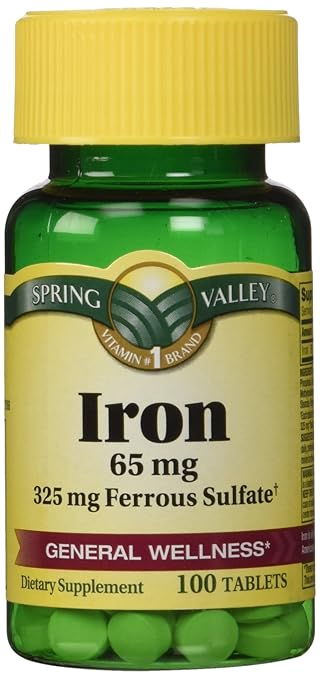 Spring Valley Iron 65 Mg Ferrous Sulfate 325 Mg 100 Tablets Ebay