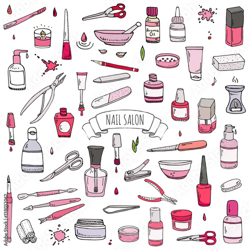 Hand Drawn Doodle Nail Salon Icons Set Vector Illustration